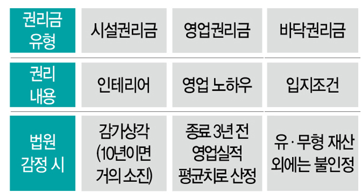 ① 시설 권리금 : 영업시설, 비품 등 유형물에 대한 대가